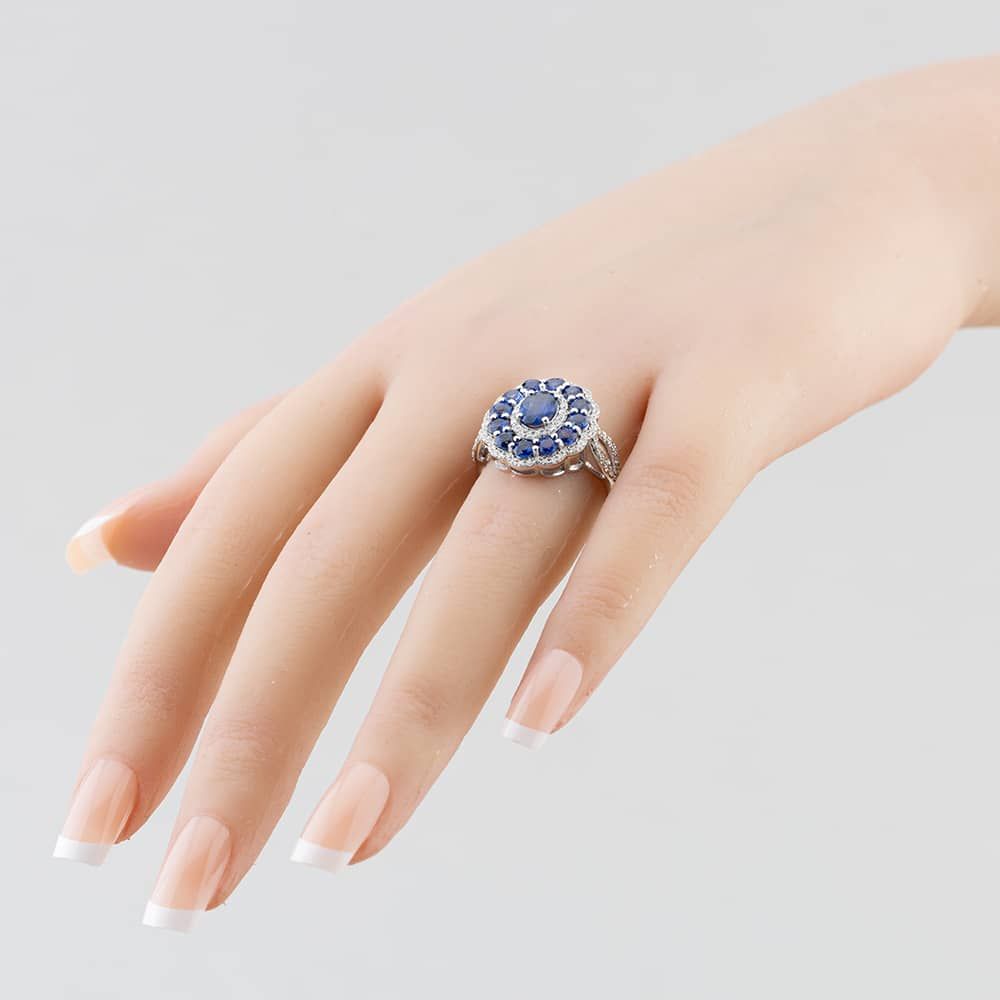 18ct White Gold 2.78ct Sapphire & 0.55ct Brilliant Cut Diamond Oval Cluster Ring