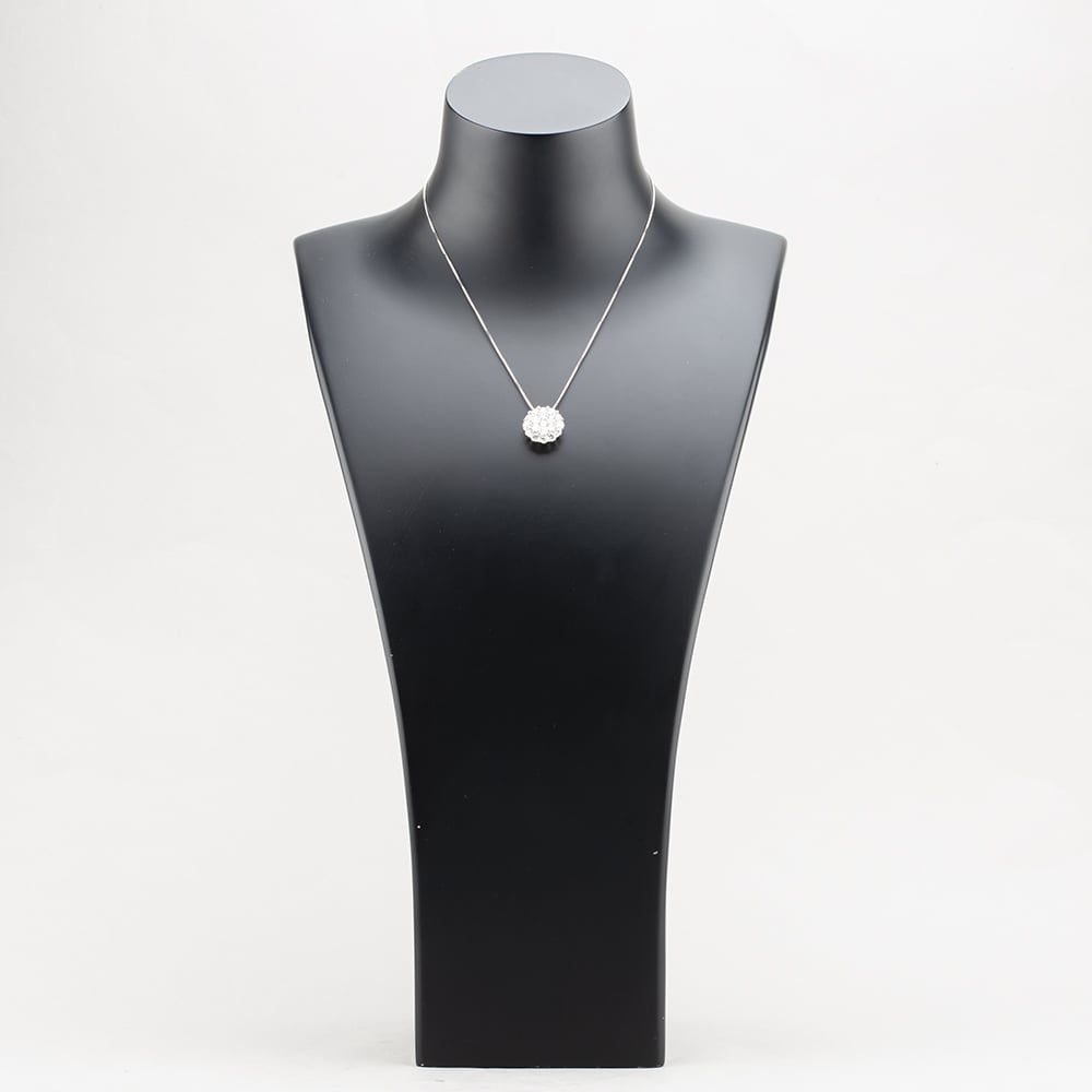 18ct White Gold 3.00ct Brilliant Cut Diamond Round Cluster Pendant & 16-18 Inch Box Chain