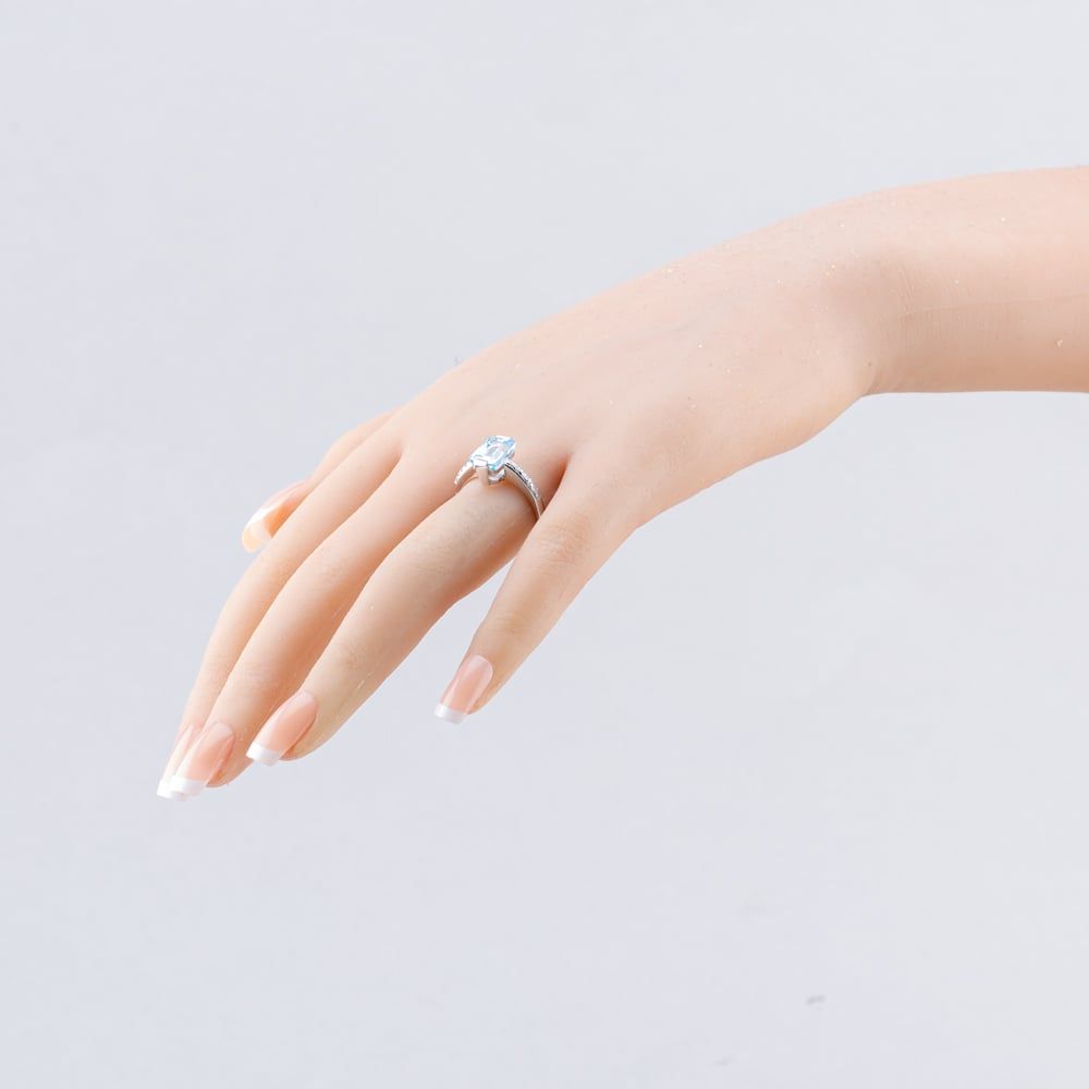 18ct White Gold 3.21ct Blue Topaz & 0.15ct Brilliant Cut Diamond Shoulders Ring