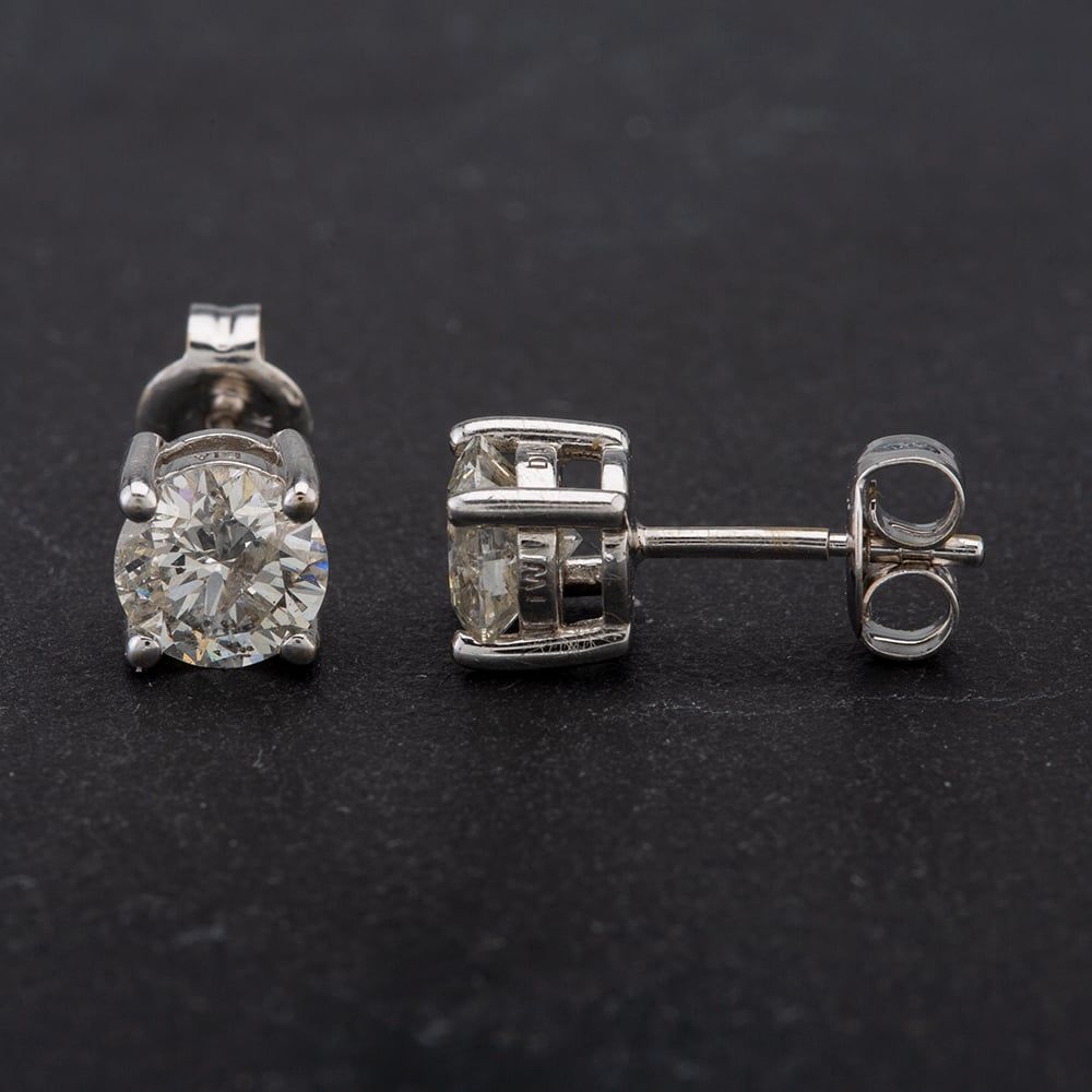 Stunning 18ct White Gold 4 Claw Set Round Brilliant Cut Diamond Single Stone Stud Earrings Each Stone Weight Approximate 0.75ct Total Approximate Diamond Weight 1.50ct Post Fitting Secured with Butterfly Backs