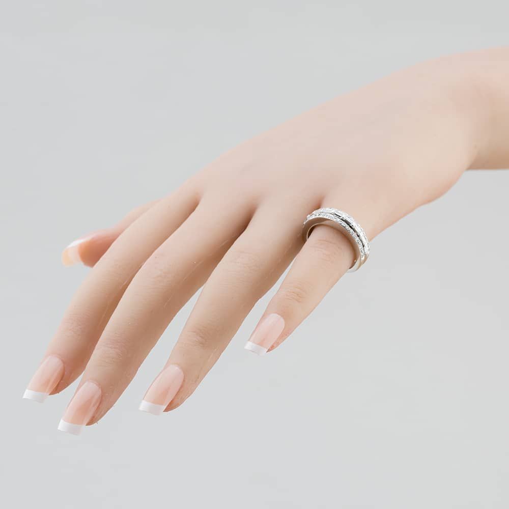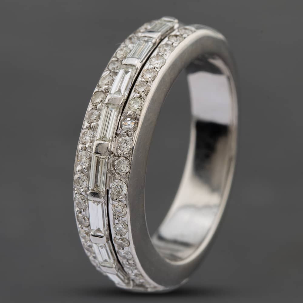 18ct White Gold Baguette & Brilliant Cut Diamond three Row Ring