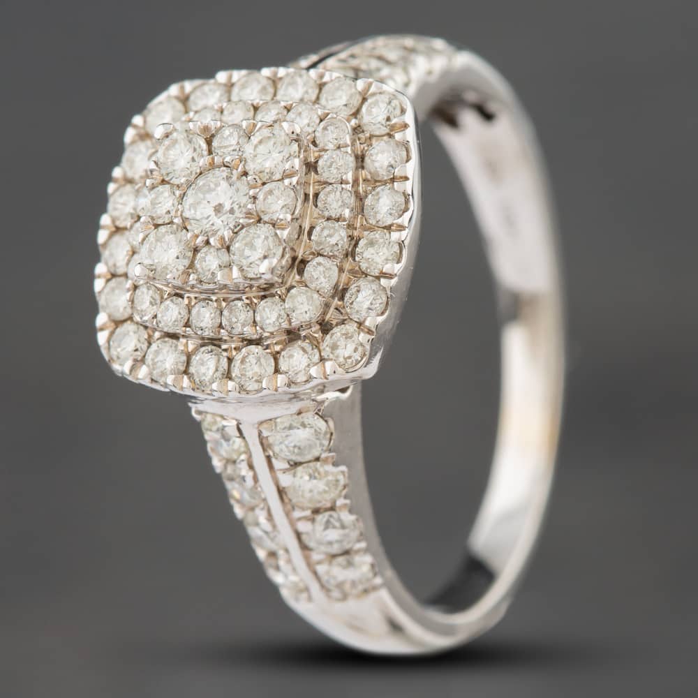 18ct White Gold Brilliant Cut Diamond Cushion Shape Graduating Cluster Ring