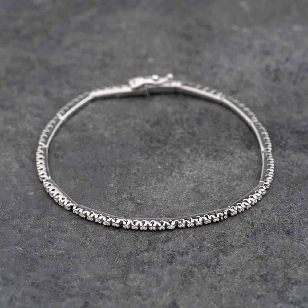 18ct White Gold Cubic Zirconia Set 6.5 Inch Bar Bracelet