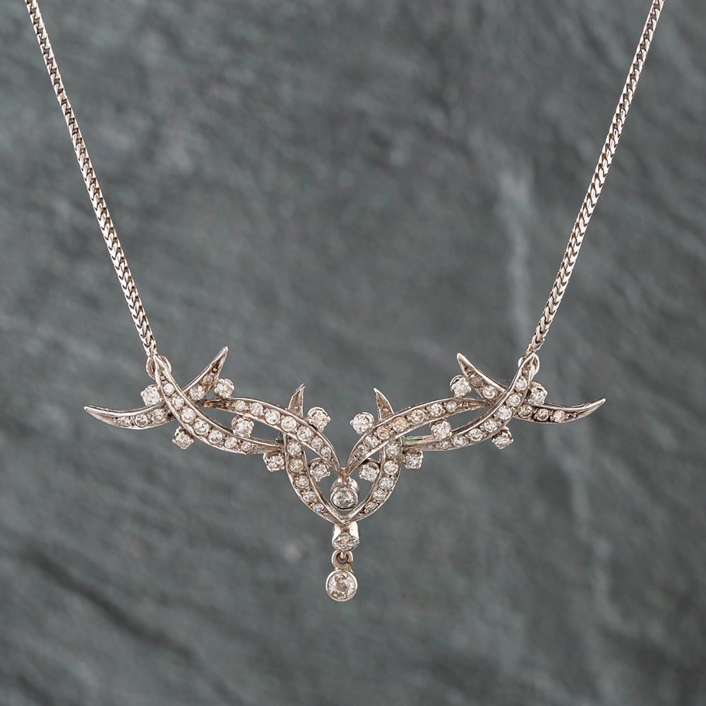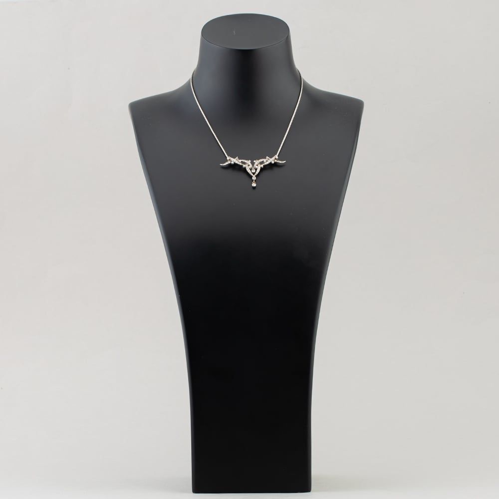 18ct White Gold Diamond Ornate Multi-Stone Pendant & 15 Inch Snake Chain