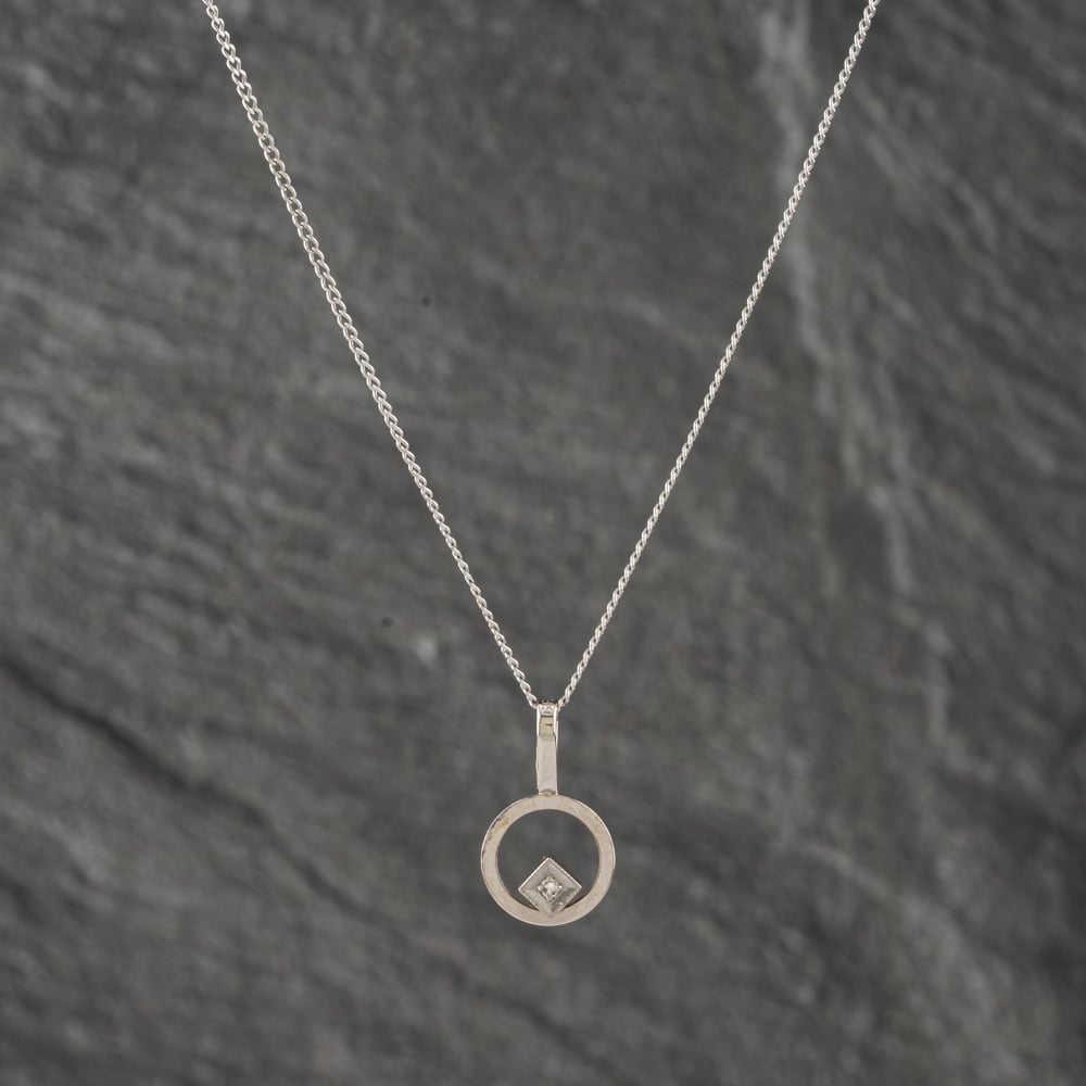 18ct White Gold Diamond Pendant & 16 Inch Curb Chain