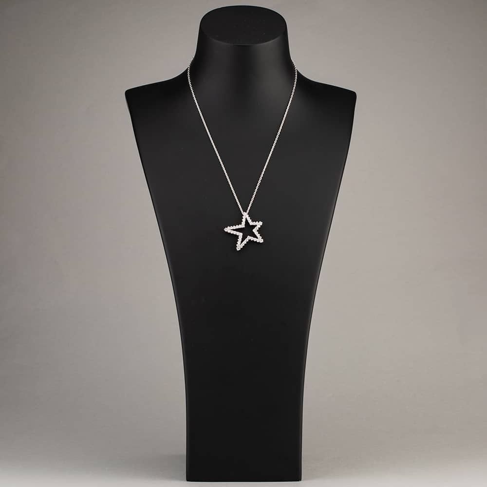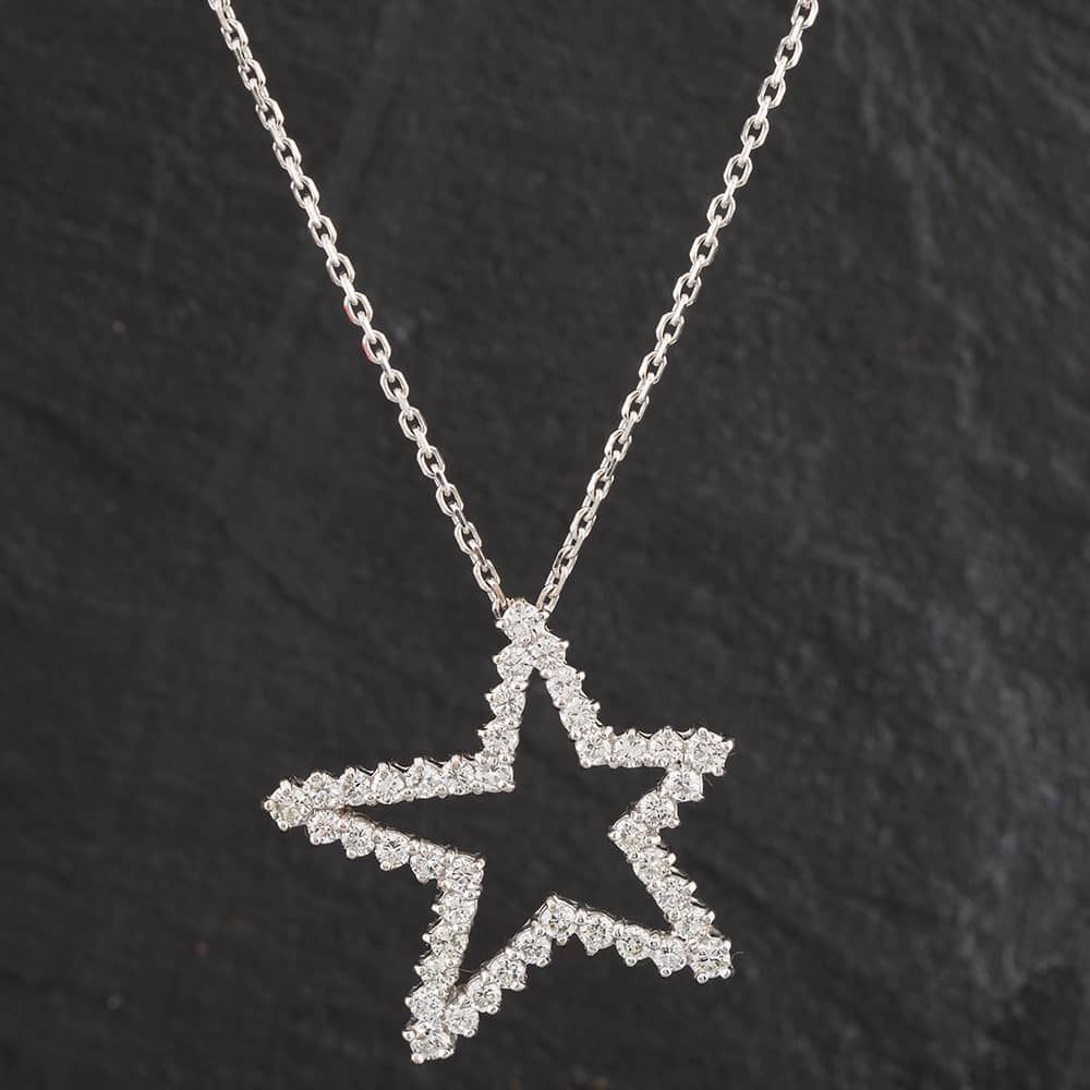 18ct White Gold Diamond Set Star Pendant & 14ct White Gold Chain Necklace 4114157