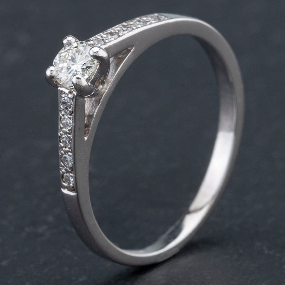 18ct White Gold Diamond Solitaire 4 Claw Set with Diamond Set Shoulders Approximate Total Diamond Weight 0.17ct