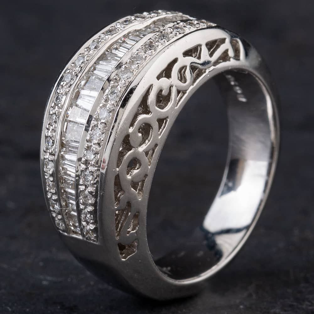 18ct White Gold Diamond Three Row Graduated Band Fancy Ring