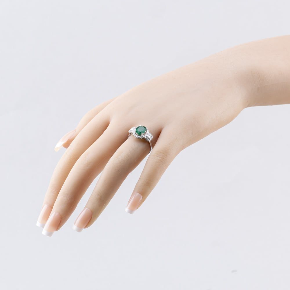 18ct White Gold Emerald & 0.58ct Diamond Oval Cluster Ring