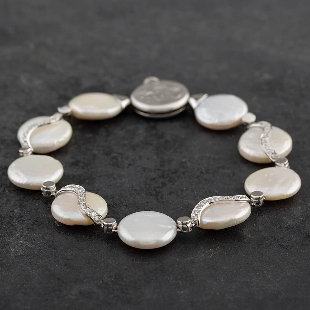 18ct White Gold Freshwater Pearl & Brilliant Cut Diamond Bracelet