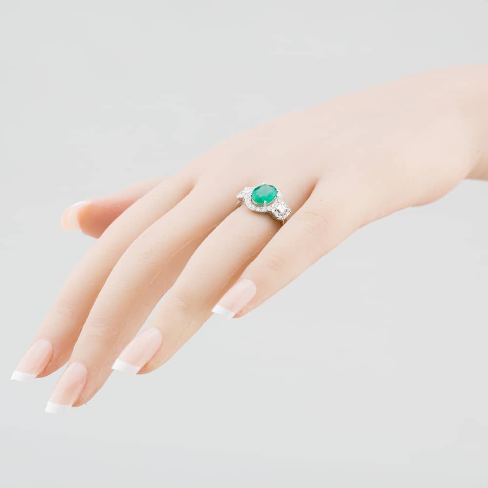 18ct White Gold Oval Cut Emerald & Diamond Cluster Ring