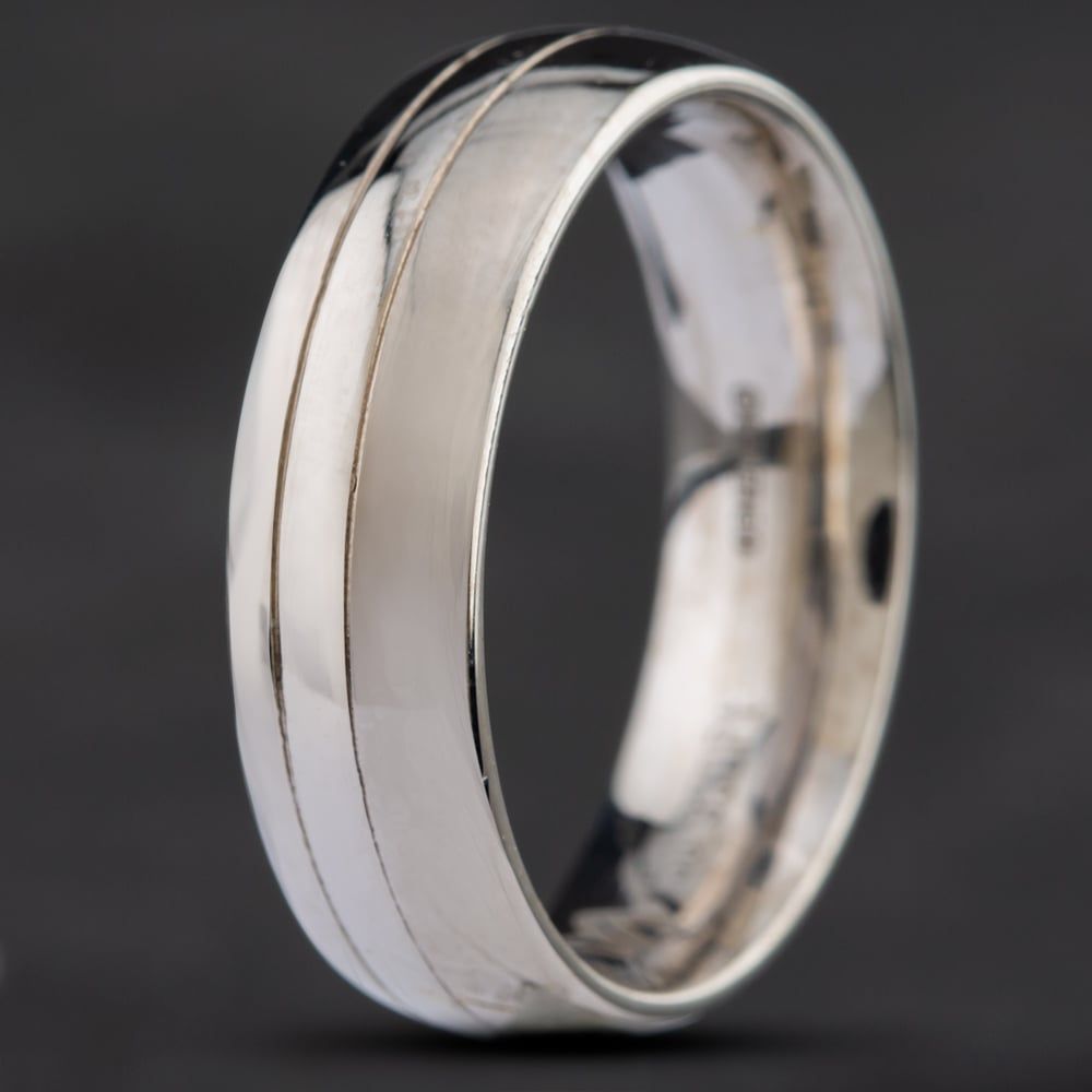 Hallmarked 18ct White Gold with a Platinum Centre Band stamped PT 950