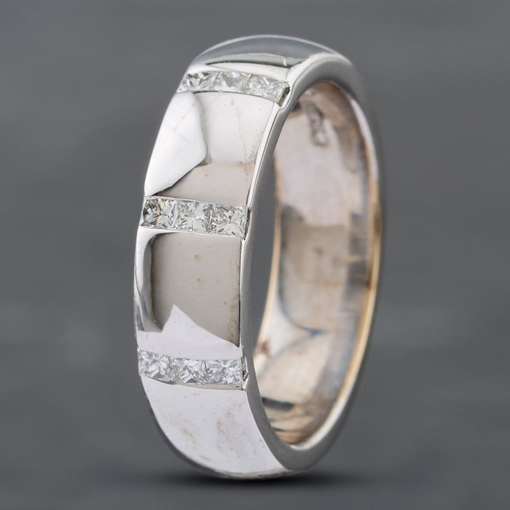 18ct White Gold Princess Cut Diamond Set D Shape 5mm Wedding Ring