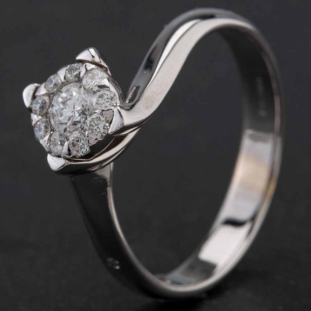 18ct White Gold Round Diamond Cluster Twisted Setting