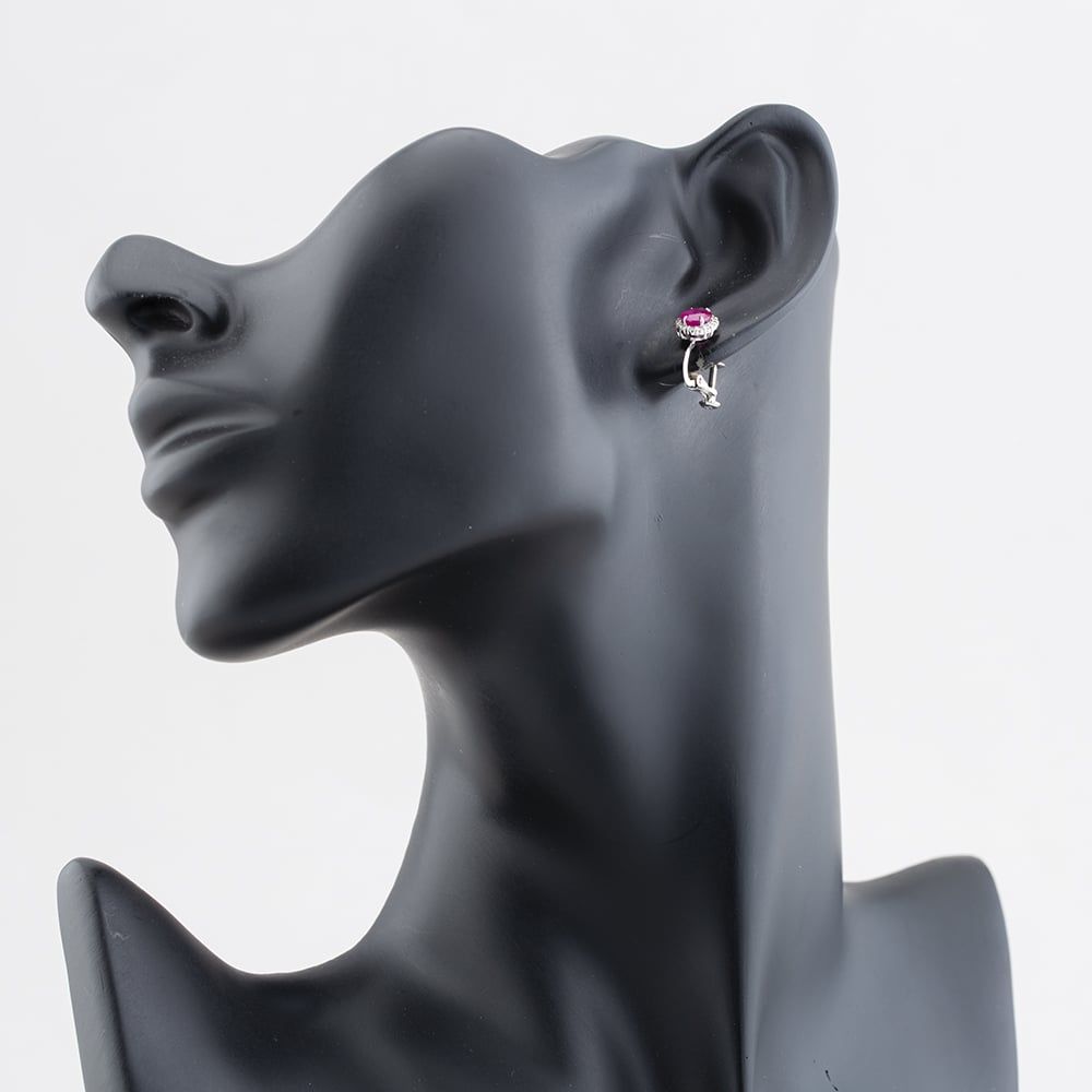 Second Hand 18ct White Gold Ruby & 0.36ct Brilliant Cut Diamond Oval Cluster Screw Fitting 9mm Stud Earrings 43171186