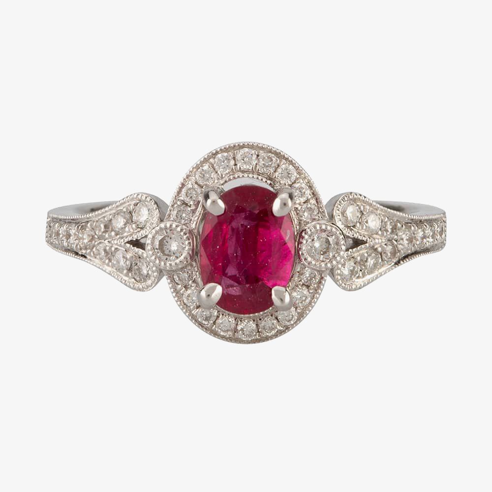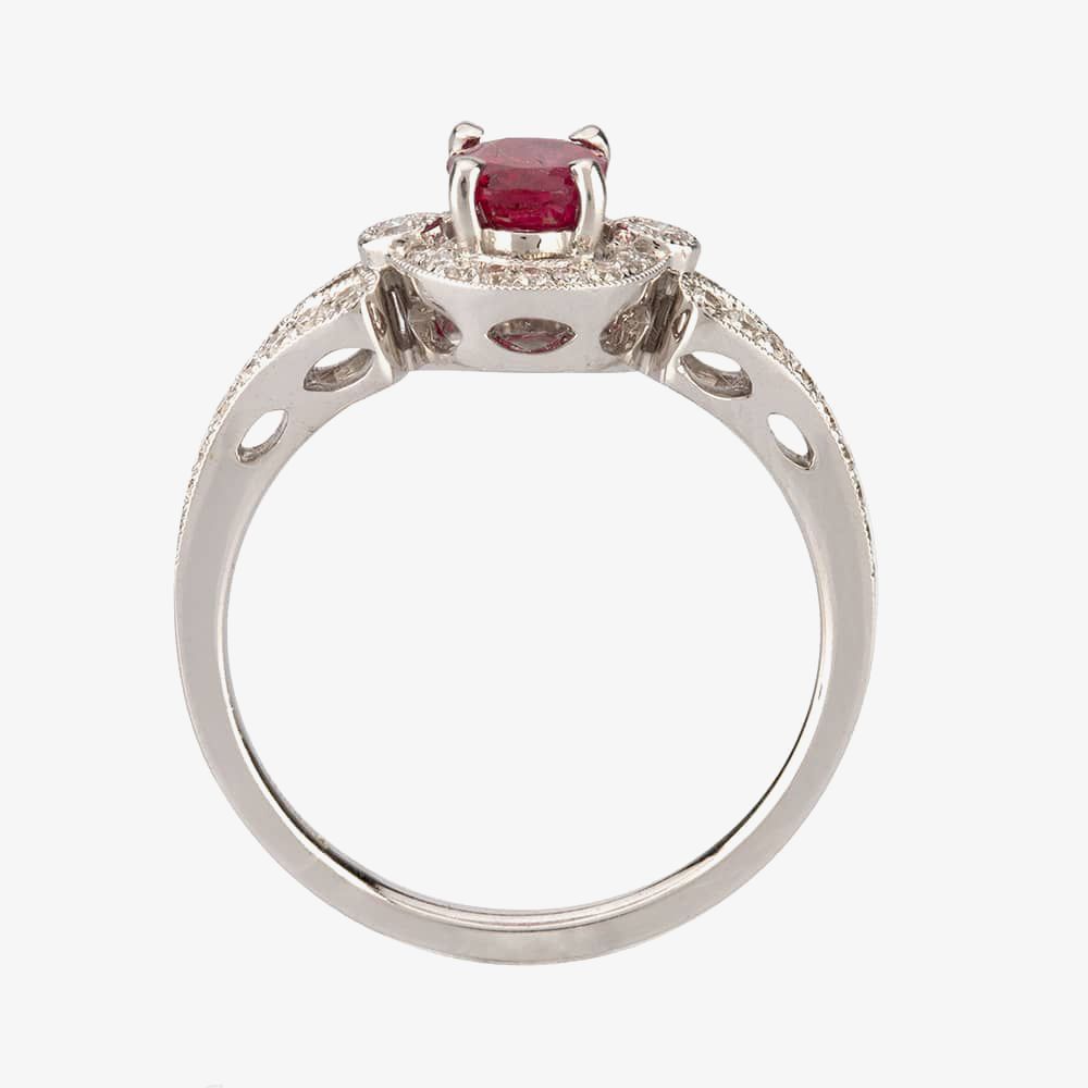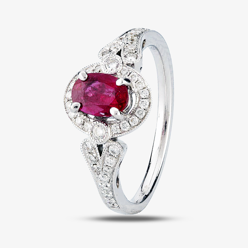 Second Hand 18ct White Gold 0.65ct Ruby & 0.30ct Diamond Cluster Ring 4312233