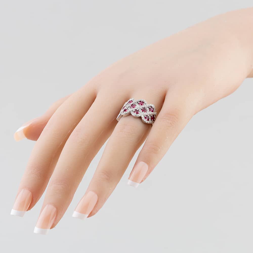 18ct White Gold Ruby & Brilliant Cut Diamond Lattice Dress Ring