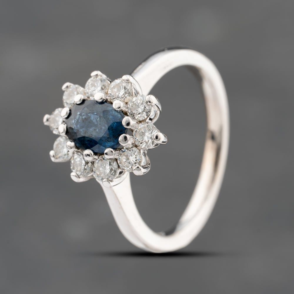 18ct White Gold Sapphire & 0.50ct Brilliant Cut Diamond Oval Cluster Ring
