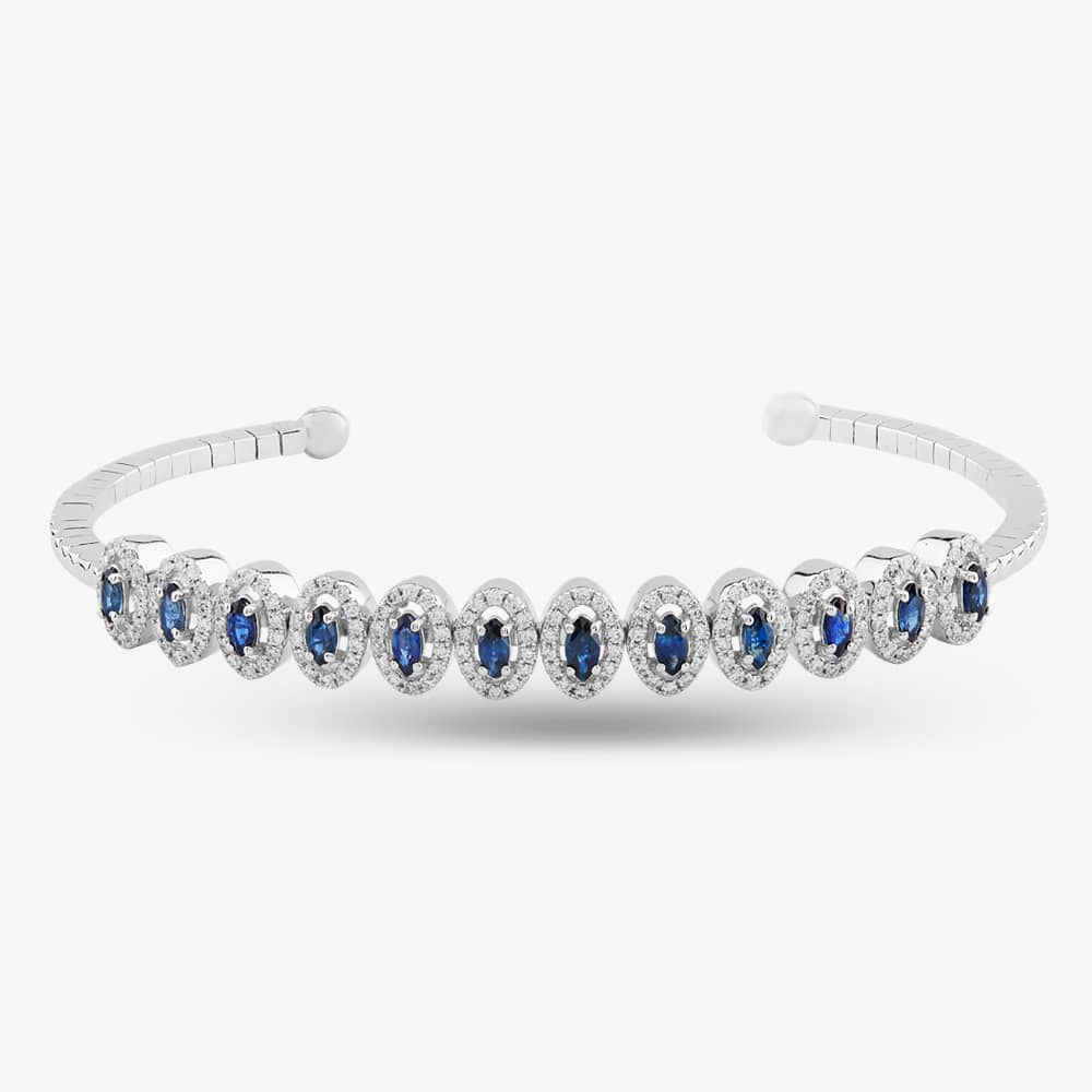 18ct White Gold Sapphire & Brilliant Cut Diamond Flexible 15Cm Torque Bangle