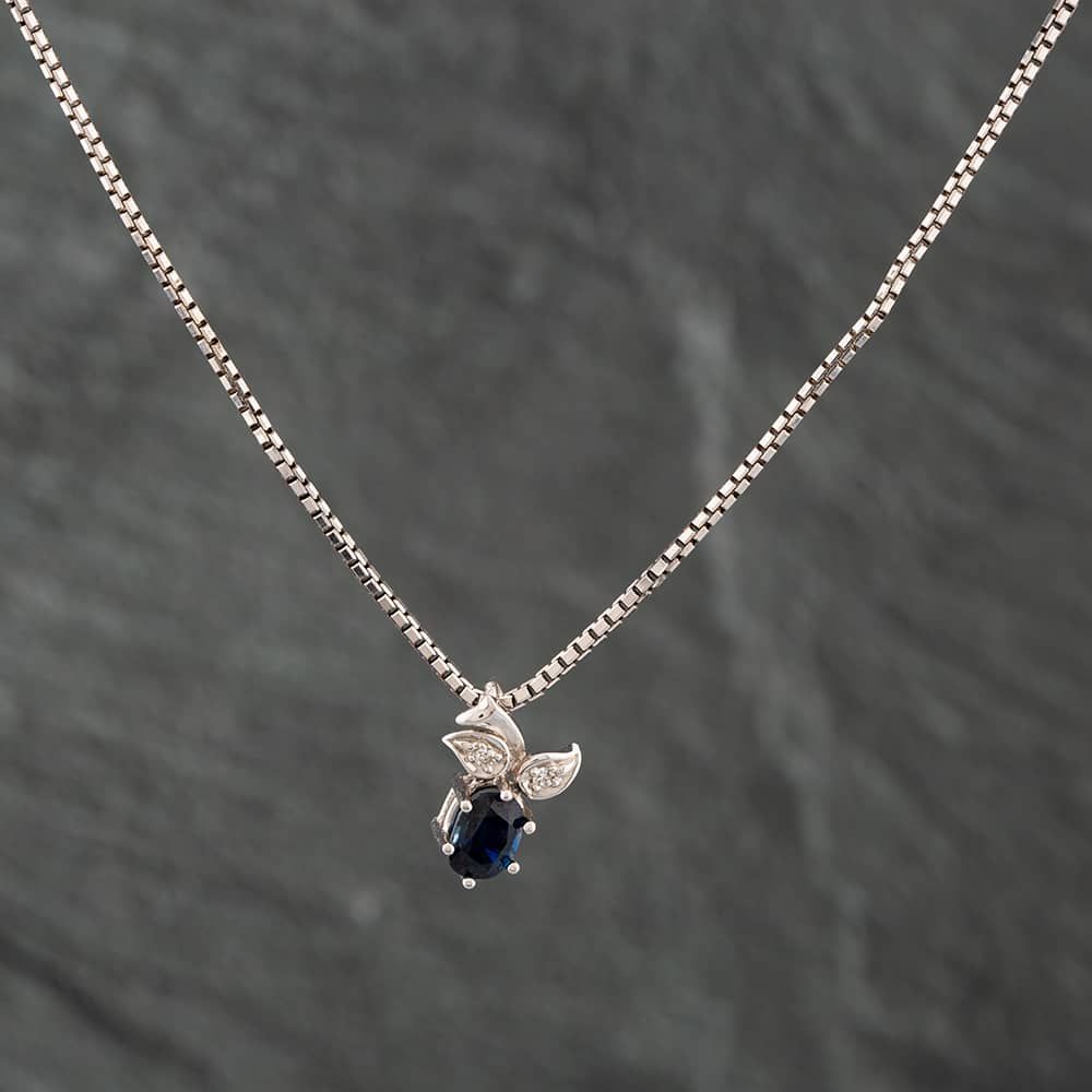 18ct White Gold Sapphire & Diamond Pendant & 15 Inch Box Chain