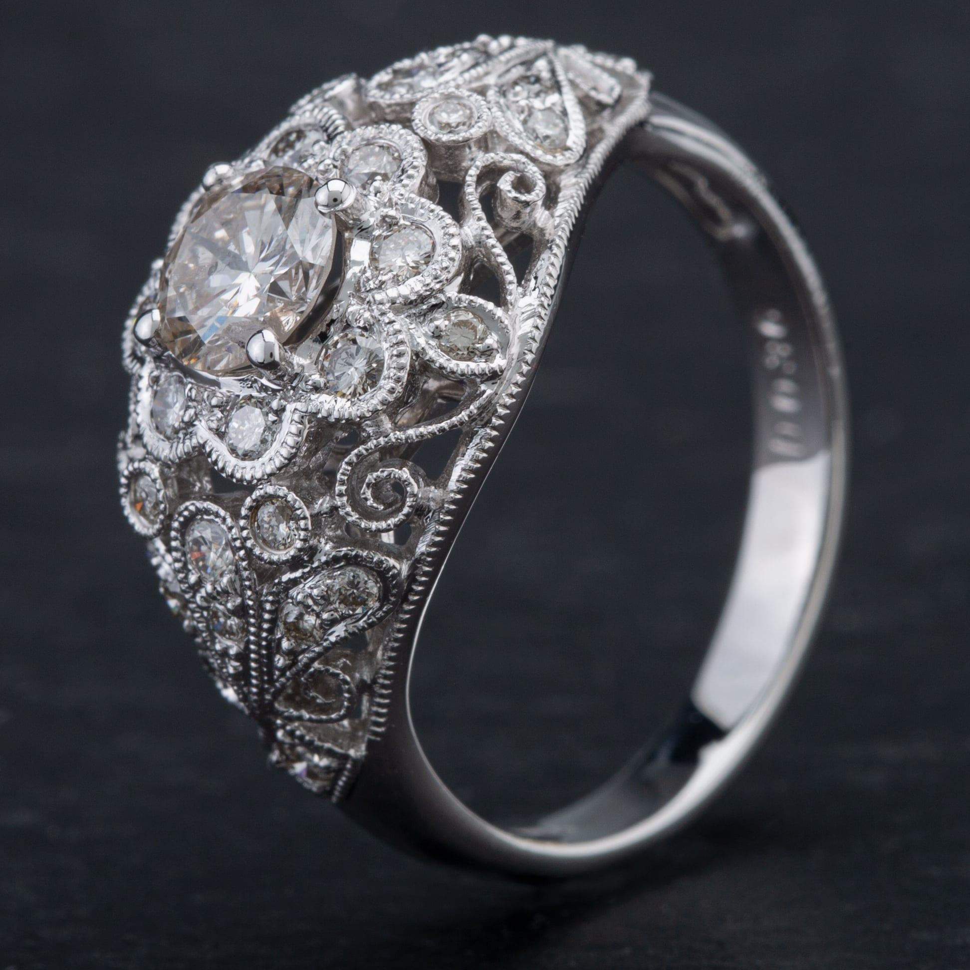18ct White Gold Stunning Vintage Style Brilliant Cut Diamond Fancy Cluster centre Stone Diamond Approximate Weight 0.60ct Surrounding Diamonds Total Weight 0.36ct Total Diamond Ring Weight 0.96ct