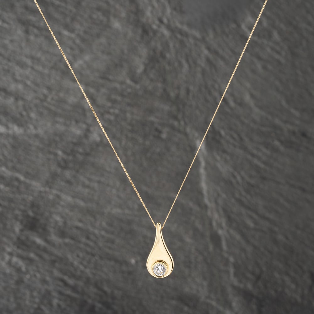 18ct Yellow Gold 0.33ct Brilliant Cut Diamond Set Pendant & 18 Inch Curb Chain