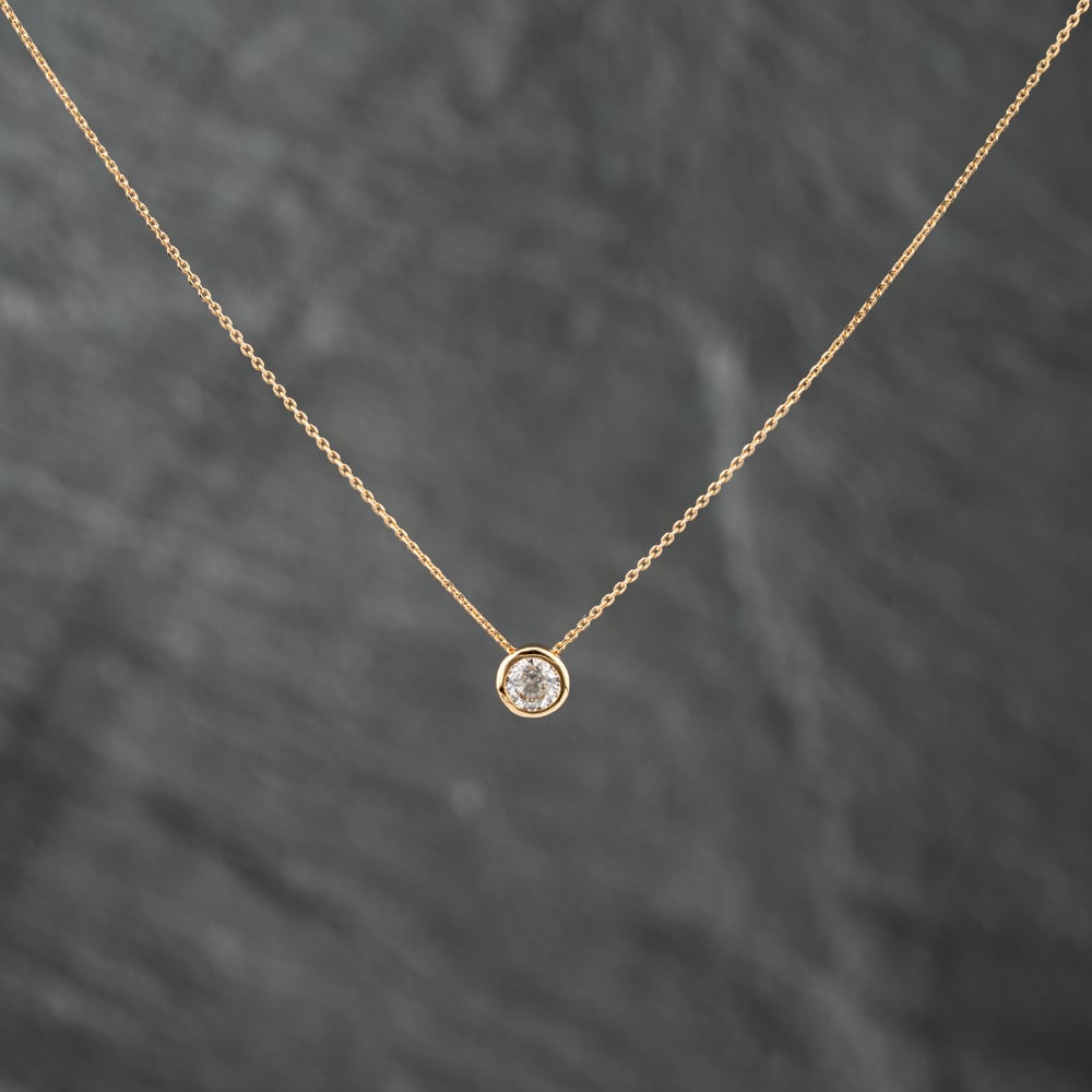 18ct Yellow Gold 0.52ct Brilliant Cut Diamond Single Stone Rubover Set Pendant & 16-18 Inch Trace Chain