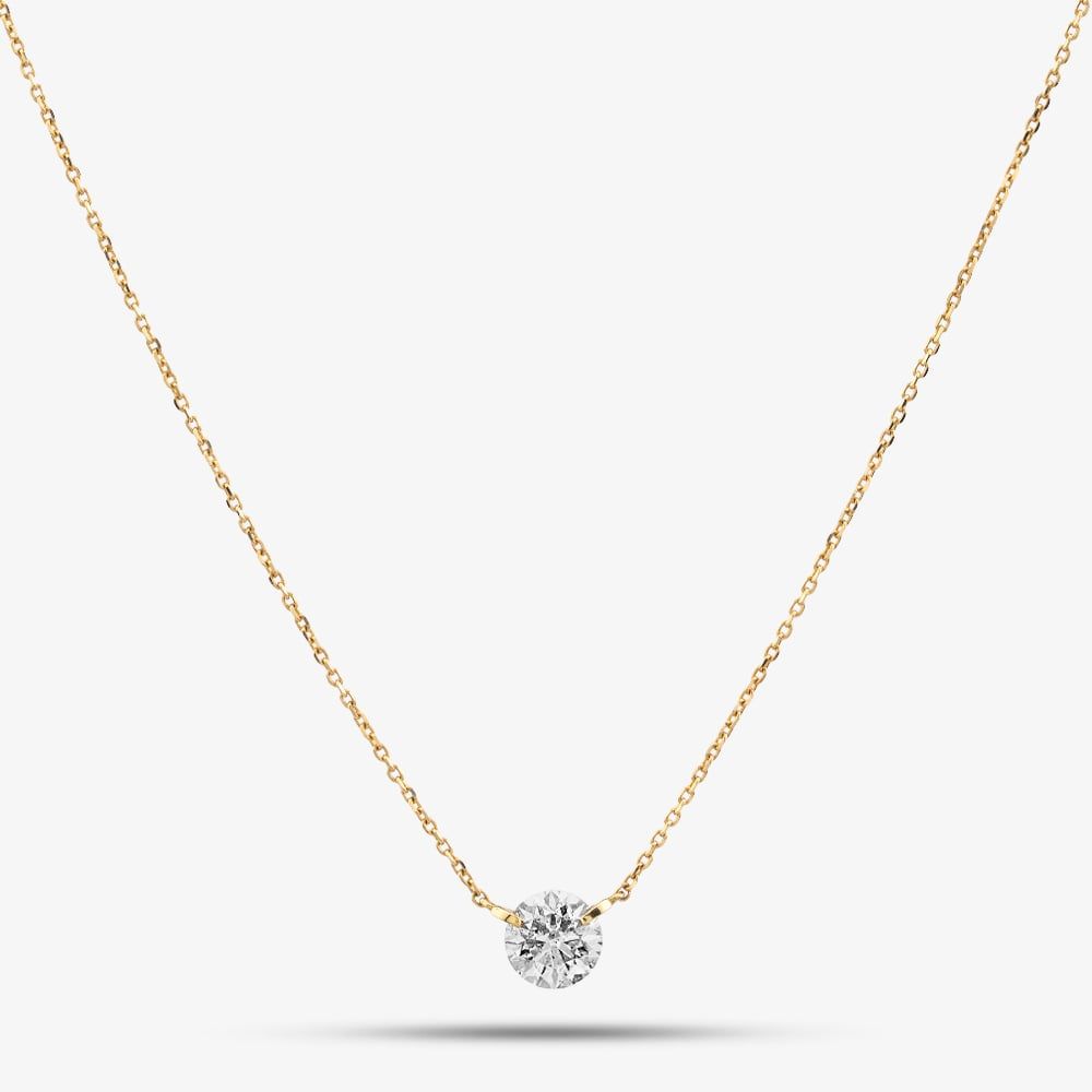 18ct Yellow Gold 0.71ct Brilliant Cut Diamond Floating Single Stone Pendant & 16-18 Inch Trace Chain