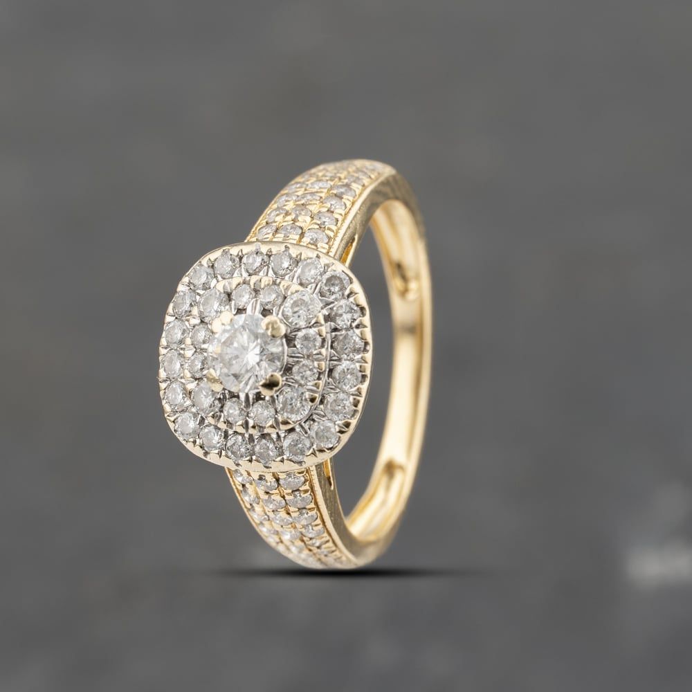 18ct Yellow Gold 1.00ct Diamond Cushion Shape Bridal Set Ring