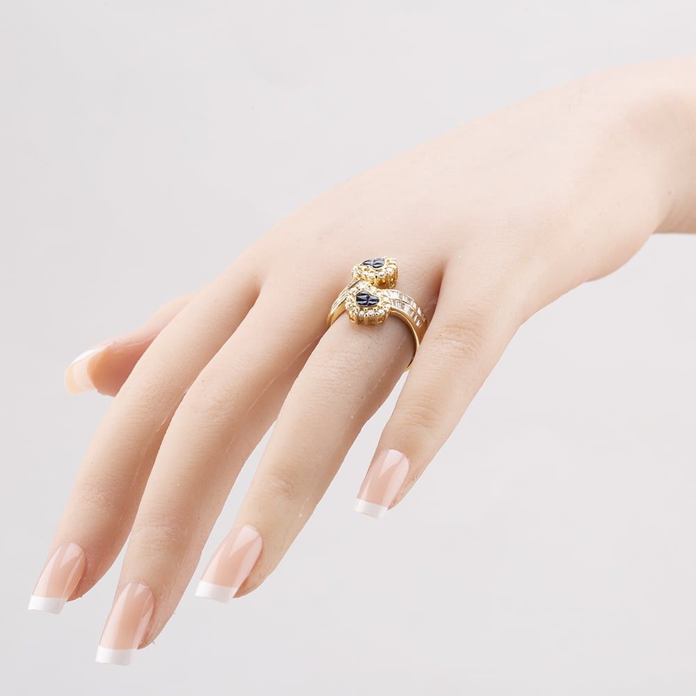 18ct Yellow Gold 1.00ct Sapphire & 1.40ct Diamond Heart Cross Over Double Cluster Ring