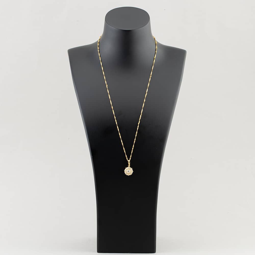 18ct Yellow Gold 1.52ct Brilliant Cut Diamond Multi Tier Cluster Pendant & 24 Inch Curb Chain