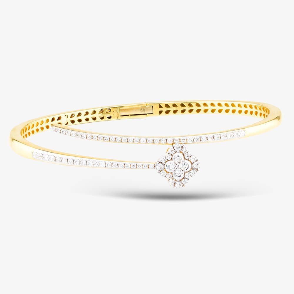 18ct Yellow Gold Brilliant Cut Diamond Fancy 18cm Hinged Bangle