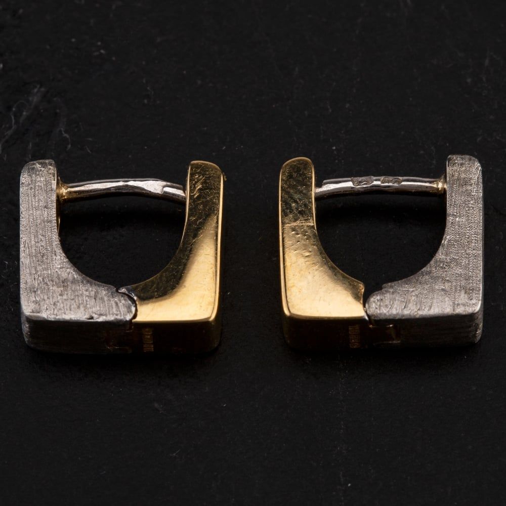 18ct Polished Yellow Gold and Brushed Finish White Gold Square Huggie Style Hinged Earrings