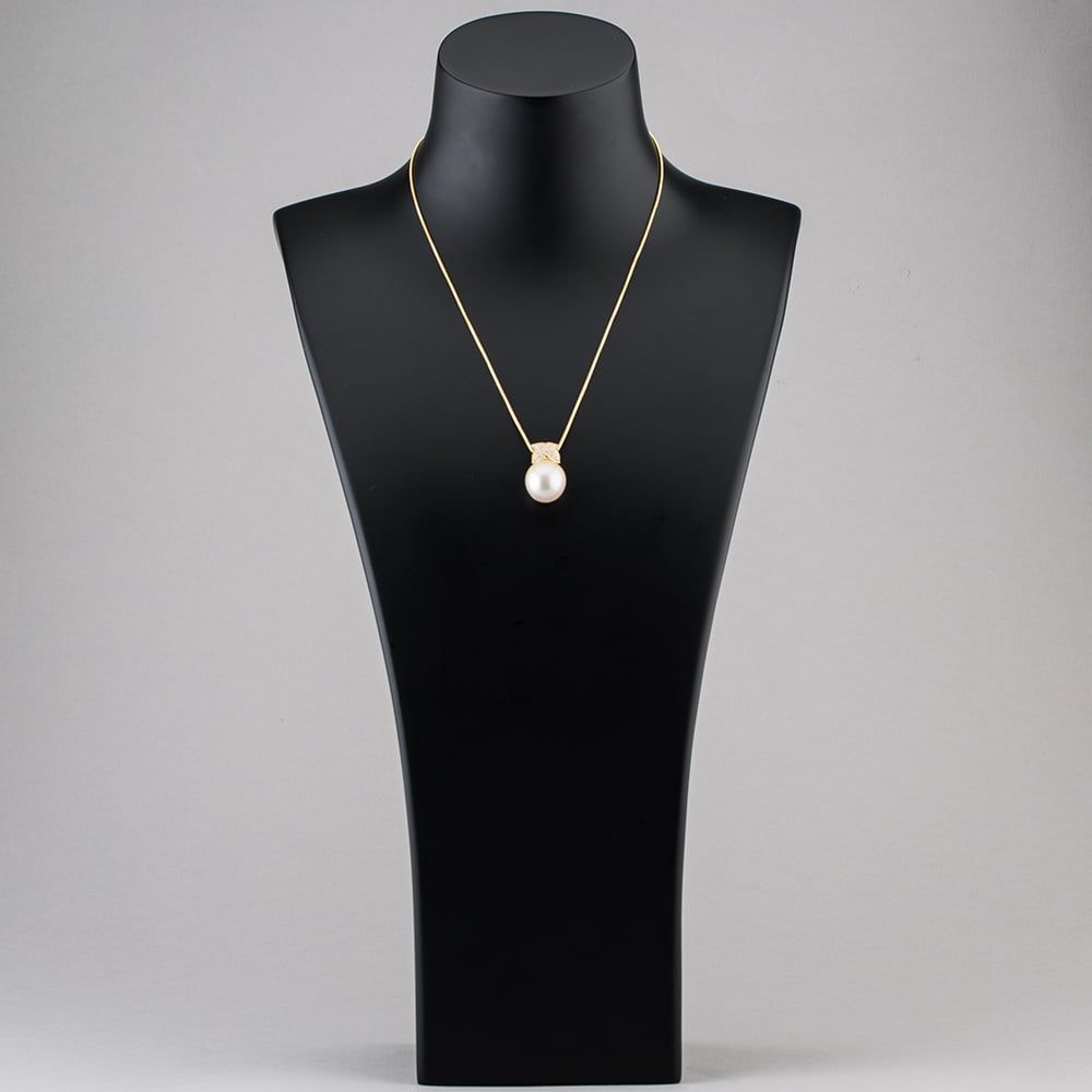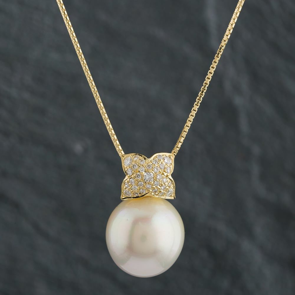 18ct Yellow Gold Diamond & 0.32ct South Sea Pearl Pendant & 18 Inch Box Chain