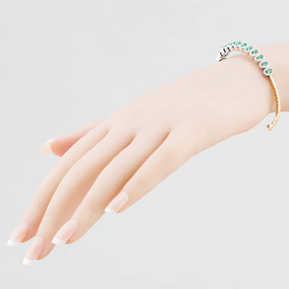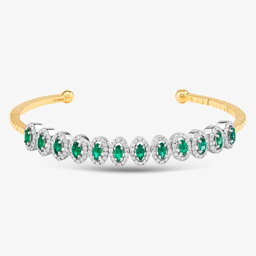 18ct Yellow Gold Marquise Cut Emerald & Brilliant Cut Diamond Halo Medium Torque Bangle