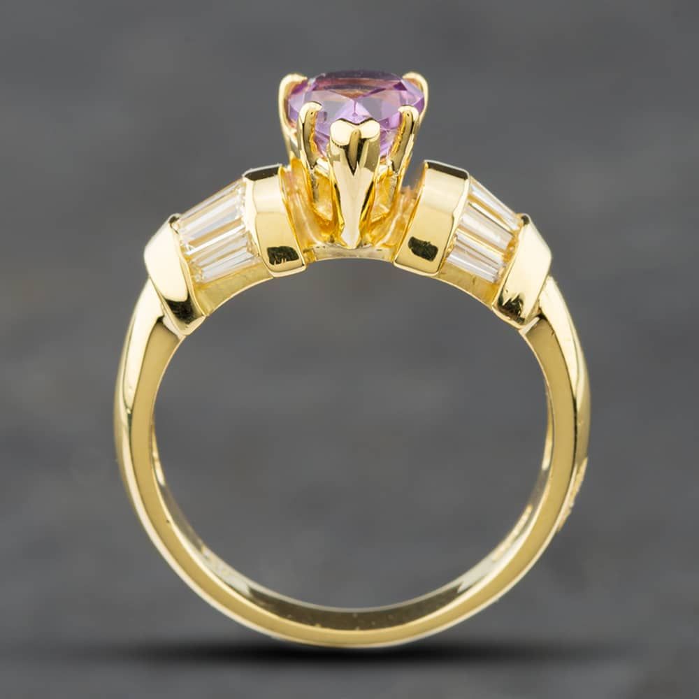 18ct Yellow Gold Pear Shaped Amethyst & Baguette Cut Diamond Dress Ring