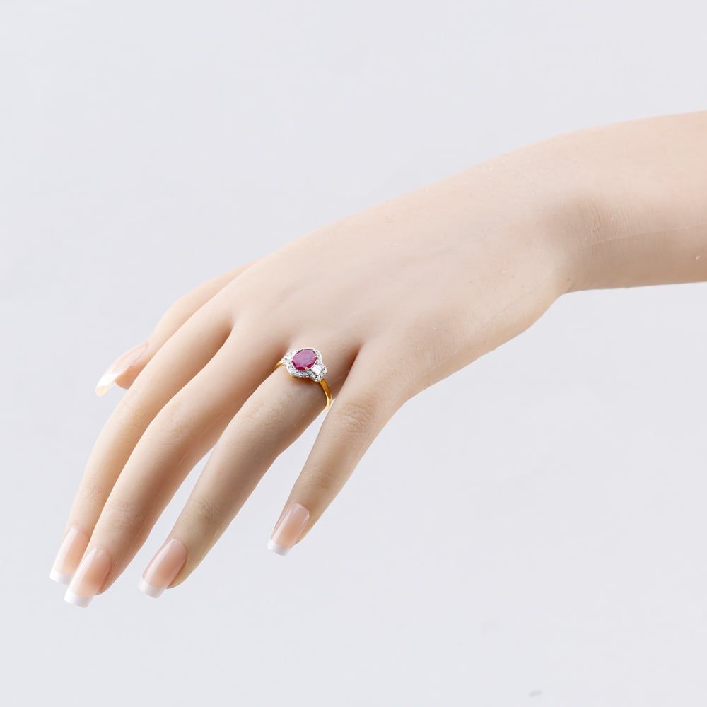18ct Yellow Gold Ruby & 0.48ct Diamond Oval Cluster Ring