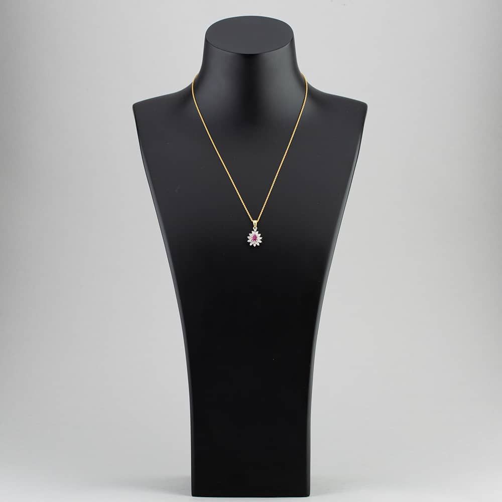 18ct Yellow Gold Ruby & Diamond Cluster Pendant & 18 Inch Trace Chain
