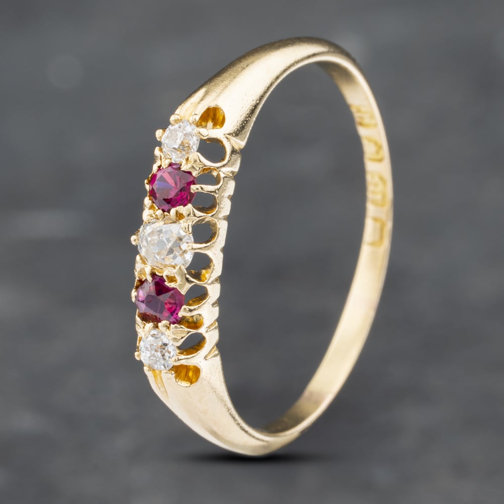 Second Hand 18ct Yellow Gold Ruby & Diamond Half Eternity Ring 41382601 Second Hand 18ct Yellow Gold Ruby & Diamond Half Eternity Ring 41382601