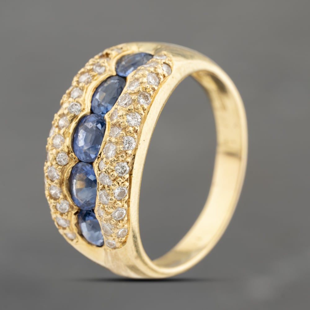 <a href="https://www.thbaker.co.uk/stores/"><b>Click here to find your <font color="6d1a42">nearest store</font></b></a>Second Handhttps://www.thbaker.co.uk/media/catalog/product/4/3/43-36-1197_model_1.jpg5056898510676add-to-cartcondition:Yesdisc_no_stock:NoYesNoSecond Hand43361197LadiesT H Baker Packaging12 Month WarrantyNoRing5.6gOThree Row18ct Yellow GoldBlueSapphireBlueBrilliant0.50ct{"name":"v12_finance","text":"Or from \u00a336 per month","imageUrl":"https:\/\/www.thbaker.co.uk\/media\/nosto\/v12-finance.png"}43361197Second Hand 18ct Yellow Gold Sapphire & 0.50ct Brilliant Cut Diamond Graduated Three Row Ring43-36-11972025-09-20 00:00:000[{"path":"\/Jewellery\/Gemstone Jewellery","url":"\/gemstone-jewellery\/"},{"path":"\/Jewellery","url":"\/jewellery\/"},{"path":"\/Jewellery\/Rings","url":"\/rings\/"},{"path":"\/Jewellery\/Rings\/Gold Rings","url":"\/gold-rings\/"},{"path":"\/Jewellery\/Gemstone Jewellery\/Sapphire Jewellery","url":"\/sapphire-jewellery\/"},{"path":"\/Jewellery\/Rings\/Gemstone Rings","url":"\/gemstone-rings\/"},{"path":"\/Second Hand Collection","url":"\/second-hand\/"},{"path":"\/Second Hand Collection\/Second Hand Jewellery","url":"\/second-hand-jewellery\/"},{"path":"\/Second Hand Collection\/Second Hand Rings","url":"\/second-hand-rings\/"},{"path":"\/Jewellery\/Gold Jewellery","url":"\/gold-jewellery\/"},{"path":"\/Second Hand Collection\/Second Hand Jewellery\/Second Hand Yellow Gold","url":"\/second-hand-yellow-gold-jewellery\/"},{"path":"\/Second Hand Collection\/Second Hand Ladies","url":"\/second-hand-ladies-collection\/"},{"path":"\/Second Hand Collection\/Second Hand Gemstones","url":"\/second-hand-gemstone-jewellery\/"},{"path":"\/Second Hand Collection\/Second Hand Rings\/Second Hand Gold Rings","url":"\/second-hand-gold-rings\/"},{"path":"\/Second Hand Collection\/Second Hand Rings\/Second Hand Yellow Gold Rings","url":"\/second-hand-yellow-gold-rings\/"},{"path":"\/Jewellery\/Ladies Jewellery","url":"\/ladies-jewellery\/"},{"path":"\/Jewellery\/Gemstone Jewellery\/Sapphire Jewellery\/Sapphire Rings","url":"\/sapphire-rings\/"},{"path":"\/Jewellery\/Gold Jewellery\/Yellow Gold Rings","url":"\/yellow-gold-rings\/"},{"path":"\/Free Gift Card - When you spend \u00a3500+","url":"\/free-gift-card\/"},{"path":"\/Second Hand Collection\/Second Hand Gold","url":"\/second-hand-gold\/"},{"path":"\/Spend over \u00a31000 and receive a \u00a3100 gift card","url":"\/gift-card-promotion\/"},{"path":"\/\u00a3150 Gold Gift Card (\u00a31000 - \u00a32000)","url":"\/150-gold-gift-card\/"},{"path":"\/Second Hand Collection\/Second Hand Gemstones\/Second Hand Sapphire","url":"\/second-hand-sapphire-jewellery\/"},{"path":"\/Second Hand Collection\/Second Hand Jewellery\/Second Hand 18ct","url":"\/second-hand-18ct-jewellery\/"},{"path":"\/Second Hand Collection\/Second Hand Latest Additions","url":"\/second-hand-latest-additions\/"},{"path":"\/Second Hand Collection\/Second Hand Gemstones\/Second Hand Sapphire\/Second Hand Sapphire Rings","url":"\/second-hand-sapphire-rings\/"},{"path":"\/Second Hand Collection\/Second Hand Rings\/Second Hand Ladies Rings","url":"\/second-hand-ladies-rings\/"},{"path":"\/Free Gift With Purchase Products","url":"\/free-gift-with-purchase-products\/"}]2025-09-20