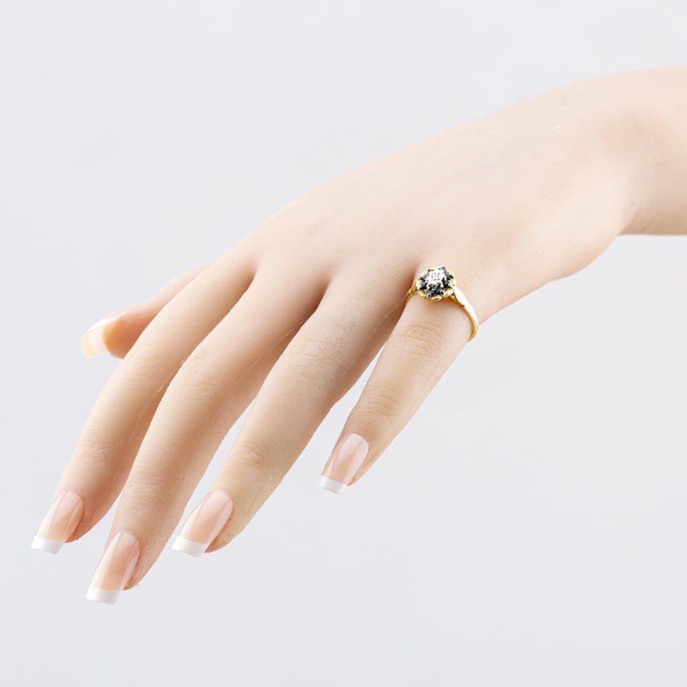 <a href="https://www.thbaker.co.uk/stores/"><b>Click here to find your <font color="6d1a42">nearest store</font></b></a>Second Handhttps://www.thbaker.co.uk/media/catalog/product/4/1/41-38-2376_model_01.jpg5056819126337condition:Yesdisc_no_stock:NoYesNoSecond Hand41382376LadiesT H Baker Packaging12 Month WarrantyNoRing2.9gK 1/2Cluster18ct Yellow GoldGoldSapphireNo Stone{"name":"Klarna","text":"3 payments of \u00a3125","imageUrl":"https:\/\/www.thbaker.co.uk\/media\/nosto\/klarna.png"}41382376Second Hand 18ct Yellow Gold Sapphire & Diamond Cluster Ring41-38-23762024-12-03 00:00:000[{"path":"\/Jewellery\/Gemstone Jewellery","url":"\/gemstone-jewellery\/"},{"path":"\/Jewellery","url":"\/jewellery\/"},{"path":"\/Jewellery\/Rings","url":"\/rings\/"},{"path":"\/Jewellery\/Rings\/Gold Rings","url":"\/gold-rings\/"},{"path":"\/Jewellery\/Gemstone Jewellery\/Sapphire Jewellery","url":"\/sapphire-jewellery\/"},{"path":"\/Jewellery\/Rings\/Gemstone Rings","url":"\/gemstone-rings\/"},{"path":"\/Second Hand Collection","url":"\/second-hand\/"},{"path":"\/Second Hand Collection\/Second Hand Jewellery","url":"\/second-hand-jewellery\/"},{"path":"\/Second Hand Collection\/Second Hand Rings","url":"\/second-hand-rings\/"},{"path":"\/Jewellery\/Gold Jewellery","url":"\/gold-jewellery\/"},{"path":"\/Second Hand Collection\/Second Hand Jewellery\/Second Hand Yellow Gold","url":"\/second-hand-yellow-gold-jewellery\/"},{"path":"\/Second Hand Collection\/Second Hand Rings\/Second Hand Cluster Rings","url":"\/second-hand-cluster-rings\/"},{"path":"\/Second Hand Collection\/Second Hand Ladies","url":"\/second-hand-ladies-collection\/"},{"path":"\/Second Hand Collection\/Second Hand Gemstones","url":"\/second-hand-gemstone-jewellery\/"},{"path":"\/Second Hand Collection\/Second Hand Rings\/Second Hand Gold Rings","url":"\/second-hand-gold-rings\/"},{"path":"\/Second Hand Collection\/Second Hand Rings\/Second Hand Yellow Gold Rings","url":"\/second-hand-yellow-gold-rings\/"},{"path":"\/Jewellery\/Ladies Jewellery","url":"\/ladies-jewellery\/"},{"path":"\/Jewellery\/Gemstone Jewellery\/Sapphire Jewellery\/Sapphire Rings","url":"\/sapphire-rings\/"},{"path":"\/Jewellery\/Gold Jewellery\/Yellow Gold Rings","url":"\/yellow-gold-rings\/"},{"path":"\/Second Hand Collection\/Second Hand Gold","url":"\/second-hand-gold\/"},{"path":"\/Second Hand Collection\/Second Hand Gemstones\/Second Hand Sapphire","url":"\/second-hand-sapphire-jewellery\/"},{"path":"\/Second Hand Collection\/Second Hand Jewellery\/Second Hand 18ct","url":"\/second-hand-18ct-jewellery\/"},{"path":"\/Second Hand Collection\/Second Hand Gemstones\/Second Hand Sapphire\/Second Hand Sapphire Rings","url":"\/second-hand-sapphire-rings\/"},{"path":"\/Second Hand Collection\/Second Hand Rings\/Second Hand Ladies Rings","url":"\/second-hand-ladies-rings\/"},{"path":"\/Free Gift With Purchase Products","url":"\/free-gift-with-purchase-products\/"},{"path":"\/Free Gift","url":"\/free-gift\/"},{"path":"\/\u00a330 Gift Card (\u00a3300-\u00a3499.99)","url":"\/30-gift-card-300-499-99\/"}]2024-12-03