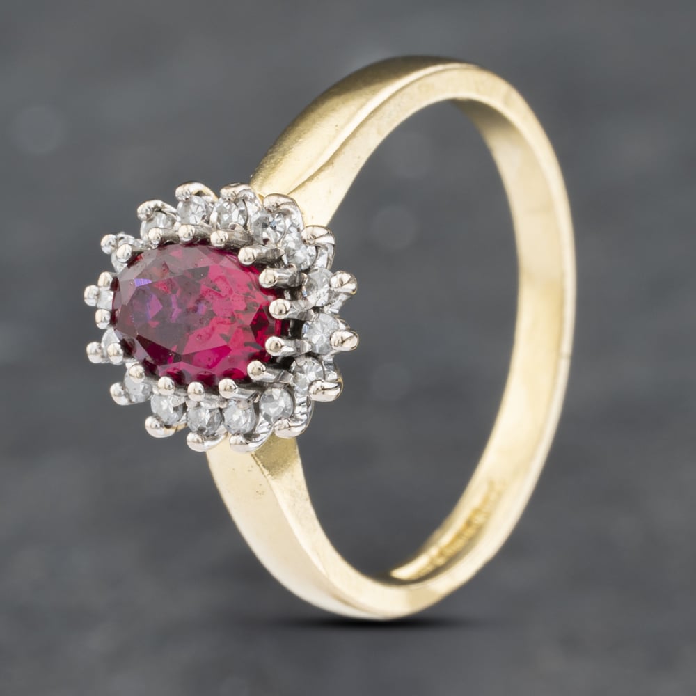 18ct Yellow Gold Synthetic Stone & Diamond Oval Cluster Ring