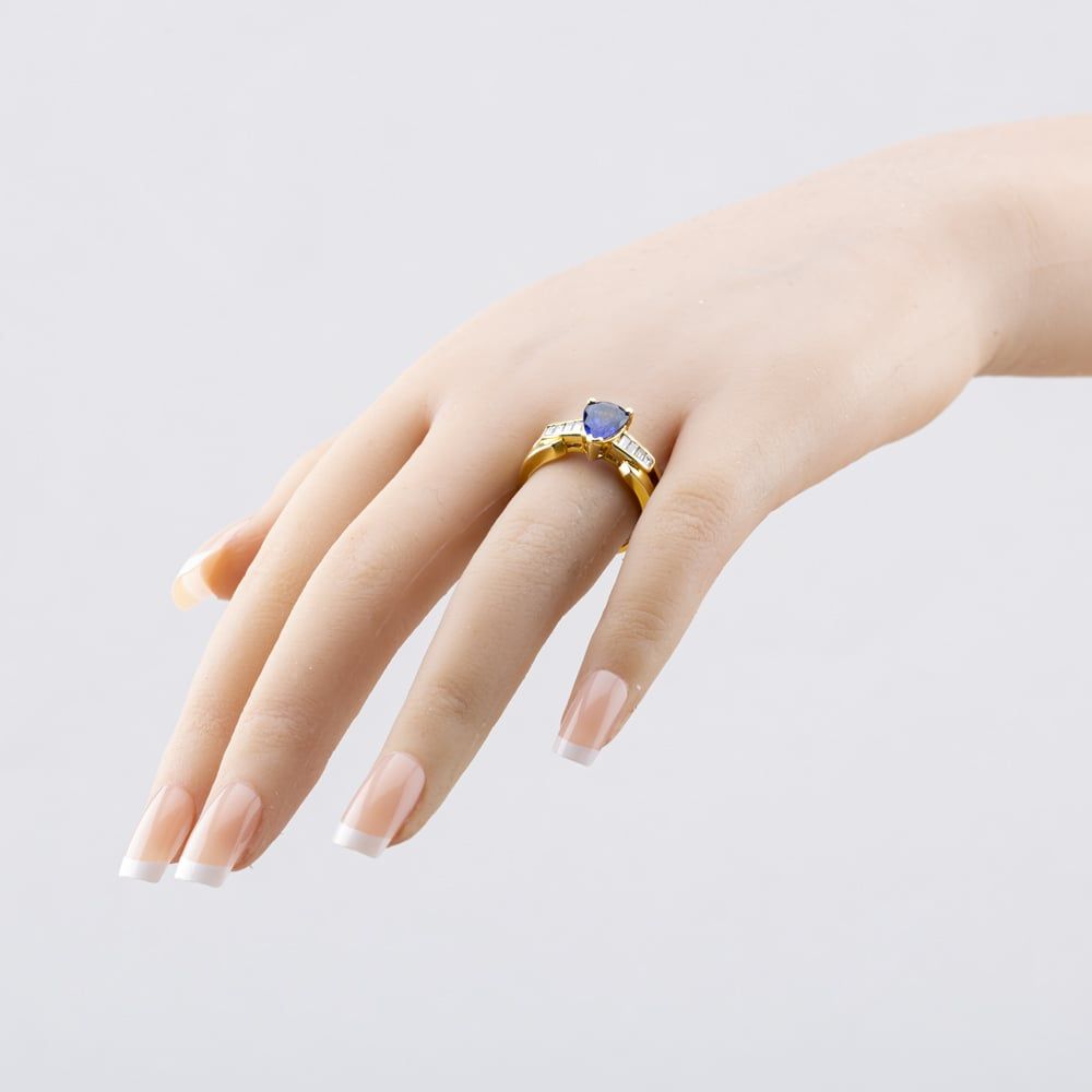 Second Hand 18ct Yellow Gold Tanzanite & 0.40ct Baguette Cut Diamond Pear Shaped Cluster Ring 41121011 Second Hand 18ct Yellow Gold Tanzanite & 0.40ct Baguette Cut Diamond Pear Shaped Cluster Ring 41121011