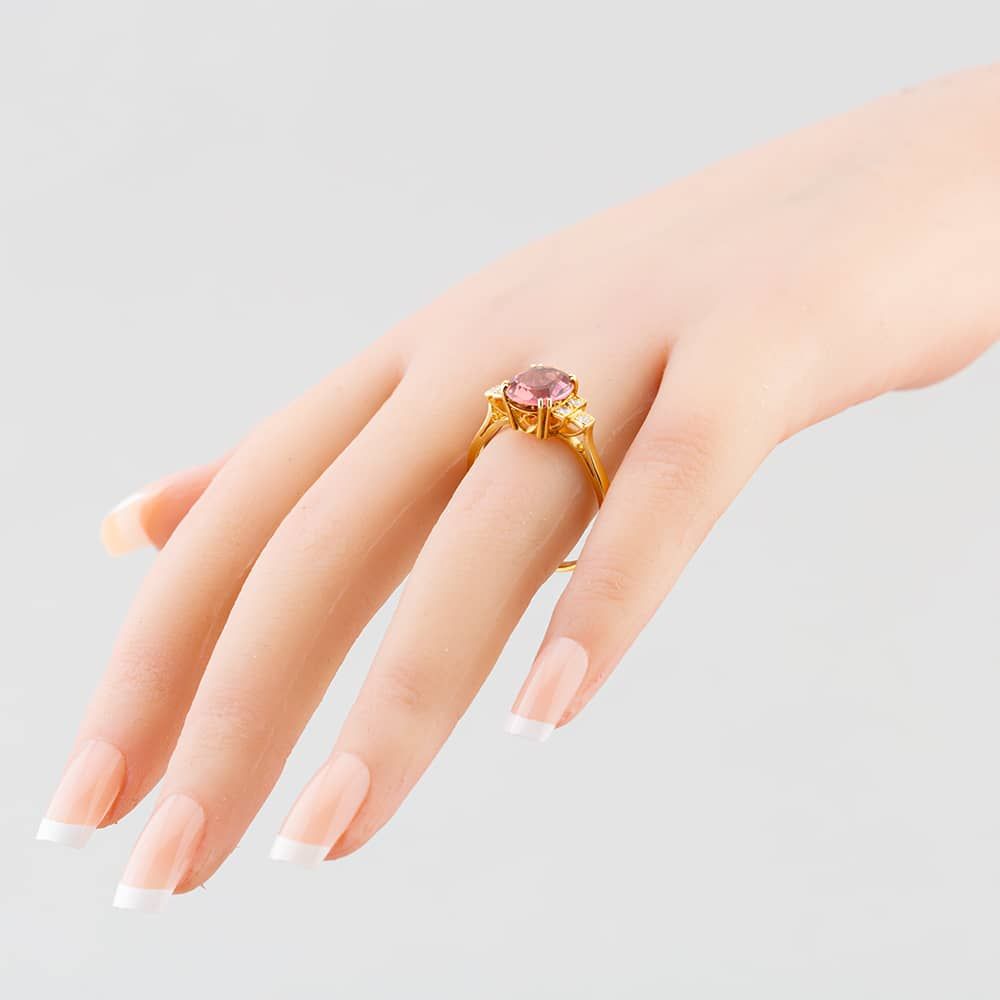 18ct Yellow Gold Tourmaline & Brilliant Cut Diamond Oval Cluster Ring