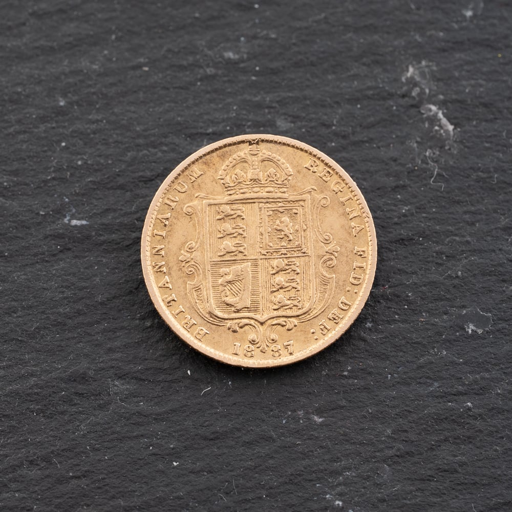 <a href="https://www.thbaker.co.uk/stores/"><b>Click here to find your <font color="6d1a42">nearest store</font></b></a>Second Handhttps://www.thbaker.co.uk/media/catalog/product/4/7/47-01-1200_2.jpgadd-to-cartcondition:Yesdisc_no_stock:NoYesNo47011200Second Hand47011200UnisexT H Baker Packaging12 Month WarrantyNoCoin4.0g22ct Yellow GoldGoldNo StoneNo Stone{"name":"v12_finance","text":"Or from \u00a314 per month","imageUrl":"https:\/\/www.thbaker.co.uk\/media\/nosto\/v12-finance.png"}Second Hand 22ct Yellow Gold 1887 Queen Victoria Shield Back Half Sovereign Coin47-01-12002025-12-23 00:00:00[{"path":"\/Second Hand Collection","url":"\/second-hand\/"},{"path":"\/Second Hand Collection\/Second Hand Jewellery","url":"\/second-hand-jewellery\/"},{"path":"\/Second Hand Collection\/Second Hand Coins","url":"\/second-hand-coins\/"},{"path":"\/Second Hand Collection\/Second Hand Ladies","url":"\/second-hand-ladies-collection\/"},{"path":"\/Second Hand Collection\/Second Hand Mens Jewellery","url":"\/second-hand-mens-collection\/"},{"path":"\/Free Gift Card - When you spend \u00a3500+","url":"\/free-gift-card\/"},{"path":"\/Second Hand Collection\/Second Hand Gold","url":"\/second-hand-gold\/"},{"path":"\/Second Hand Collection\/Second Hand Jewellery\/Second Hand 22ct","url":"\/second-hand-22ct-jewellery\/"},{"path":"\/Second Hand Collection\/Second Hand Latest Additions","url":"\/second-hand-latest-additions\/"},{"path":"\/Free Gift With Purchase Products","url":"\/free-gift-with-purchase-products\/"},{"path":"\/\u00a350 Gift Card (\u00a3500-\u00a3999.99)","url":"\/50-gift-card-500-999-99\/"}]2025-12-23
