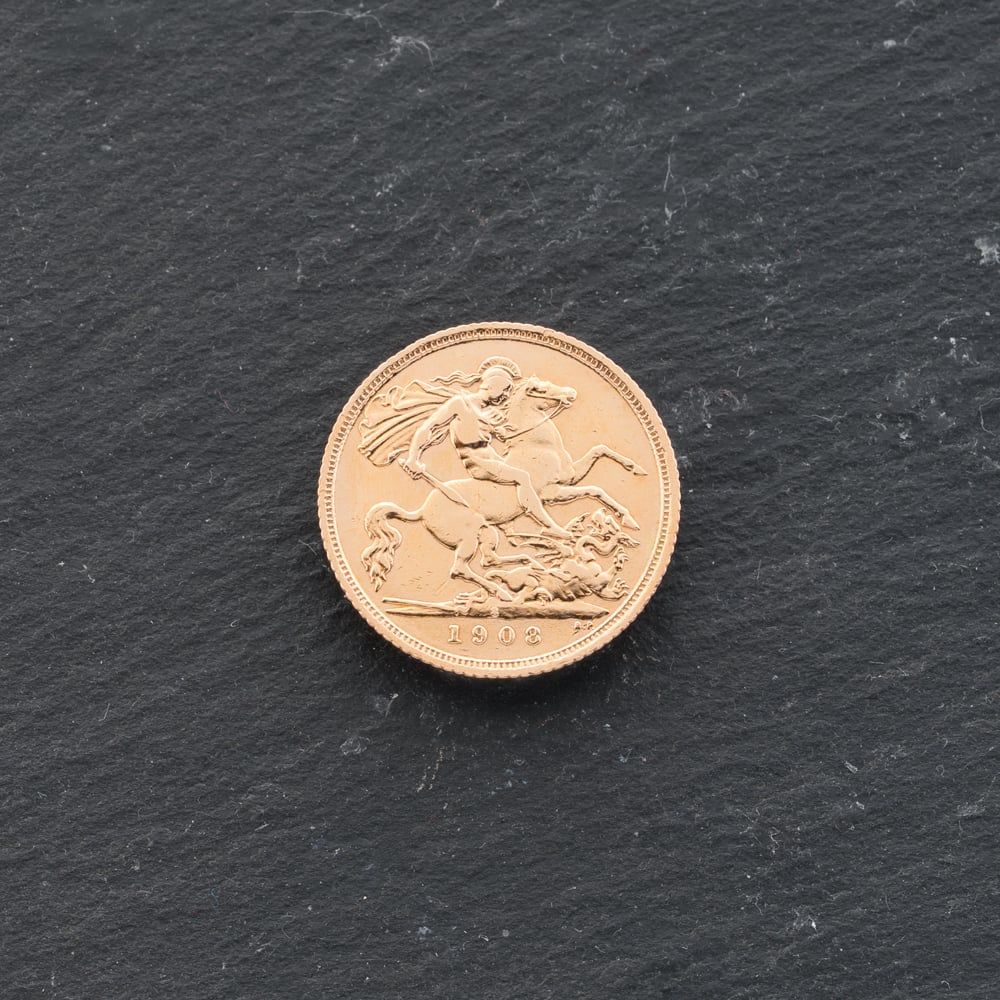 22ct Yellow Gold 1908 Edward VII Half Sovereign Coin
