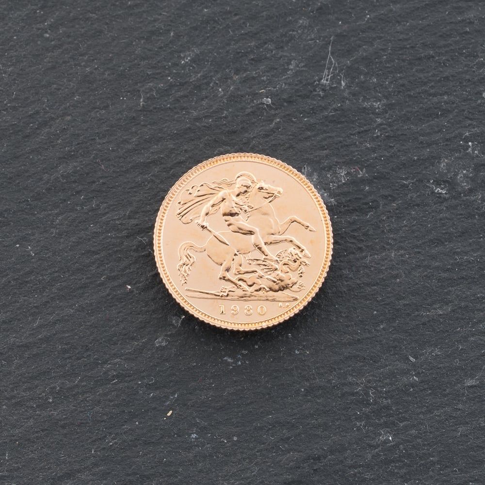 22ct Yellow Gold 1980 Queen Elizabeth II Half Sovereign Coin