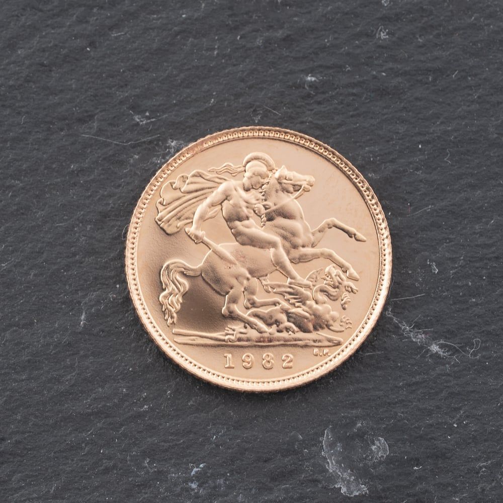 22ct Yellow Gold 1982 Queen Elizabeth II Half Sovereign Coin