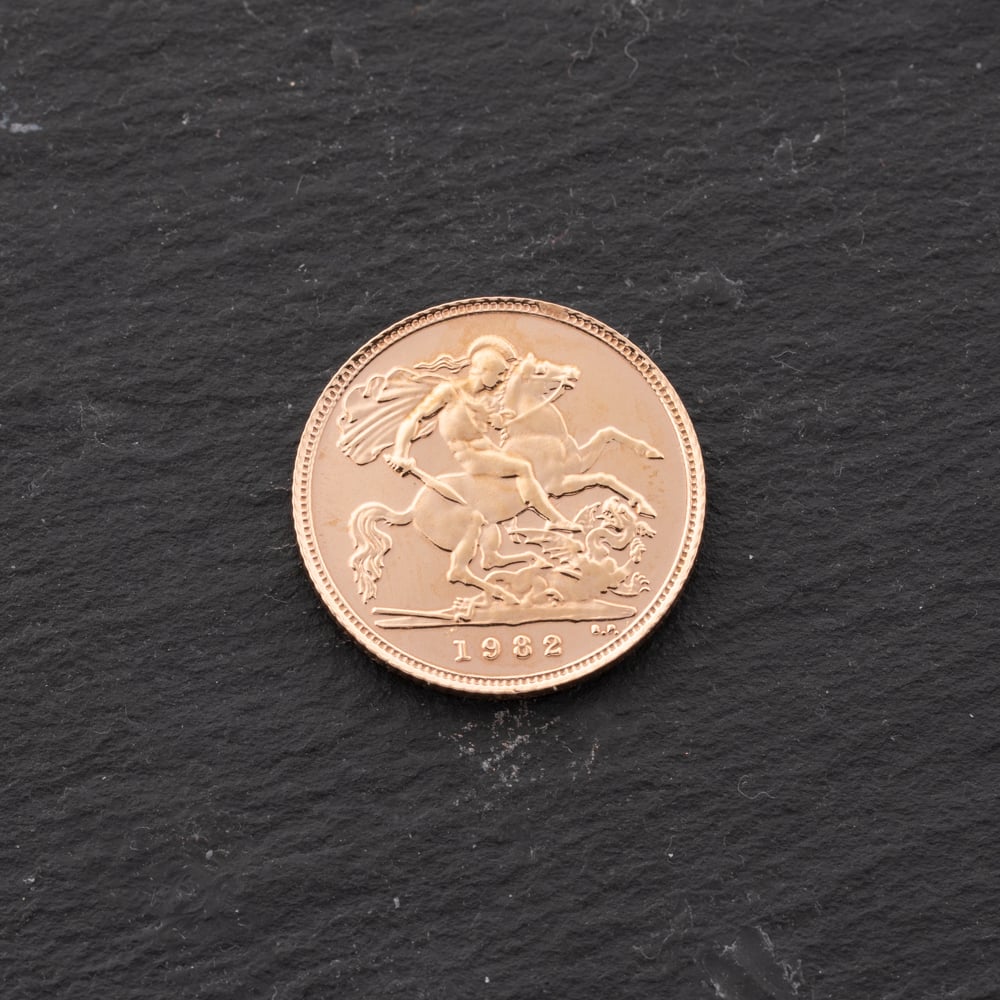 22ct Yellow Gold 1982 Queen Elizabeth II Half Sovereign Coin