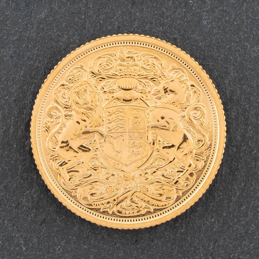 22ct Yellow Gold Full Sovereign 2022 King Charles III Coat Of Arms Coin